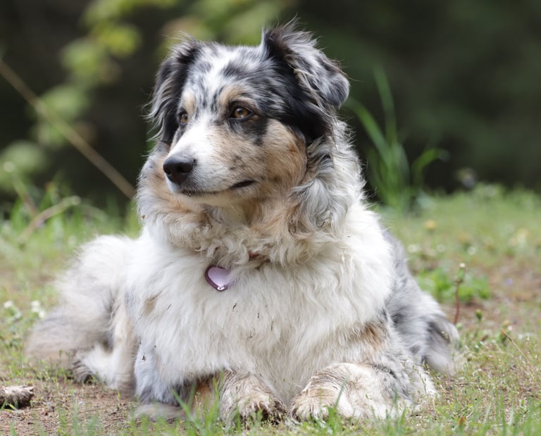 Our pretty, blue merle girl came to us in March 2022 as the first Aussie to our family. She came from the Nevada desert and has grown into quite the mountain adventurer here in North Idaho. She is sassy, has a high drive for playtime, is very protective, and has an undying affection for her people. Irma really took to loving water at a young age and is an impressive water dog- if there was ever such a thing for an Australian Shepherd! Irma protects what is hers and is very loyal to our family. We love our blue merle girl, and want her beauty and legacy to continue on with other families alike.