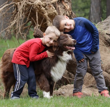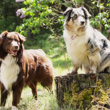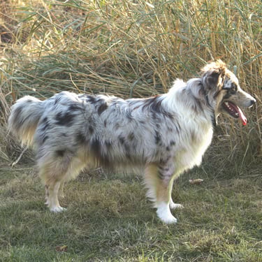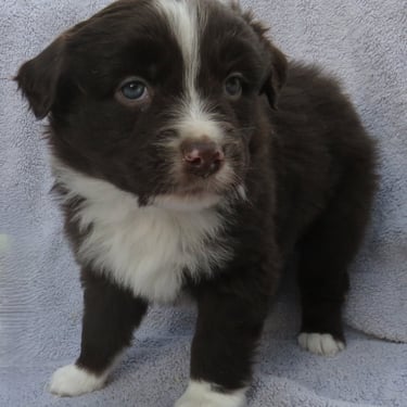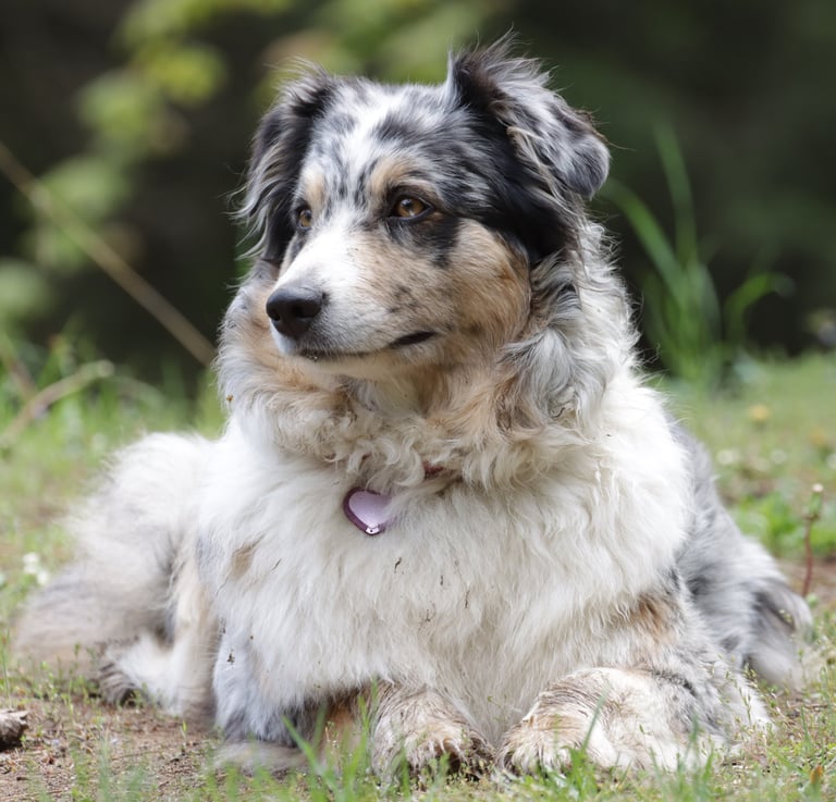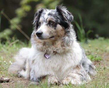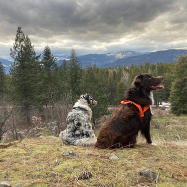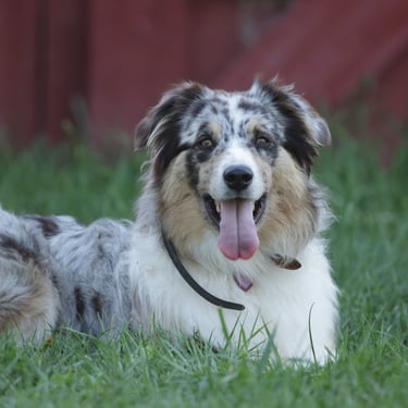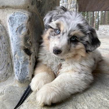 Our pretty, blue merle girl came to us in March 2022 as the first Aussie to our family. She came from the Nevada desert and has grown into quite the mountain adventurer here in North Idaho. She is sassy, has a high drive for playtime, is very protective, and has an undying affection for her people. Irma really took to loving water at a young age and is an impressive water dog- if there was ever such a thing for an Australian Shepherd! Irma protects what is hers and is very loyal to our family. We love our blue merle girl, and want her beauty and legacy to continue on with other families alike.