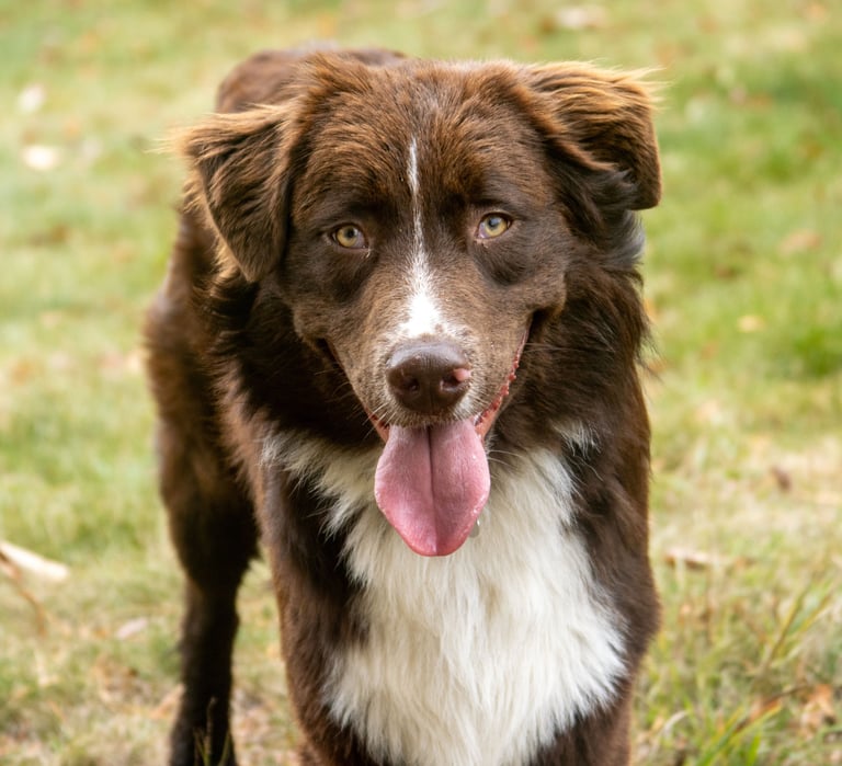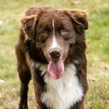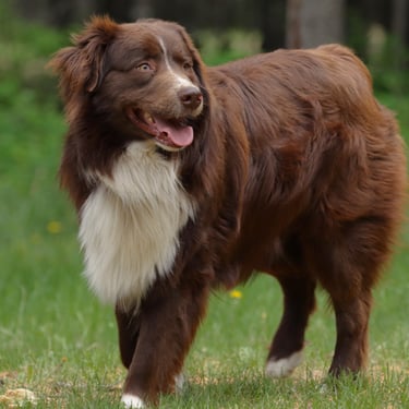 Mack came to our family in August 2023 at 6 months of age from a breeder in Eureka, Montana. While looking for a red male to breed with our blue merle, we came across his photo and instantly fell in love. He is very laid back, sweet, playful, and extremely loving. Mack is an excitable dog when it comes to playing with playmates. He is a little shy meeting a new dog for the first time, but once he warms up to another playmate he is their best friend forever. Mack is very loyal to his people and a great companion for Irma. We love our Mackie boy and love having him as our sire for NW Shoreline Aussies!