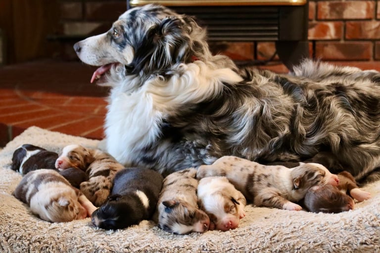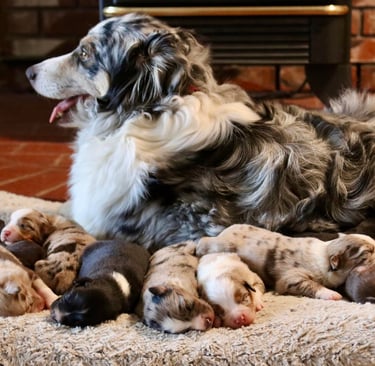 Our pups come with ASDR Registration, full breeding rights (no additional cost), microchipped, UTD on all shots/dewormer, tails docked and dewclaws removed within 3 days of birth. We also send our pups home with a baggie of starter food, health brochure, bill of sale, microchip info, and a toy of their choice.